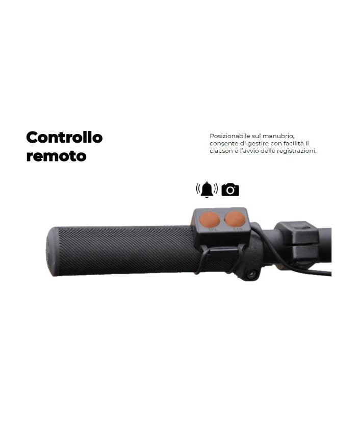 Grâce à la télécommande positionnable sur le guidon, vous pouvez activer le klaxon ou démarrer des enregistrements rapidement et facilement, sans être distrait de la conduite.