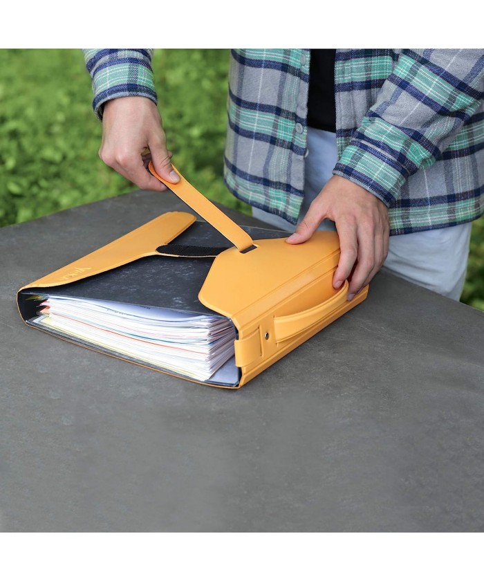 Le porte-classeur/ porte-document universel. Il s'adapte à tous classeurs et tous porte-documents en vente sur le marché (format A4 de 40 à 80mm). Le porte-classeur se fixe sur votre classeur et reste en place pendant que vous l'utilisez. Le porte-classeur se compose d'un corps principal et d'une lanière de 120 cm adaptable en trois longueurs : 96 cm, 104 cm ou 112 cm. Facile à transporter grâce à la poignée ou en bandoulière. Le porte-classeur est fabriqué à partir d’un pvc biocompatible. Cet objet de transport est garanti 5 ans. Notre marque Yaka et nos produits sont protégés au niveau international.