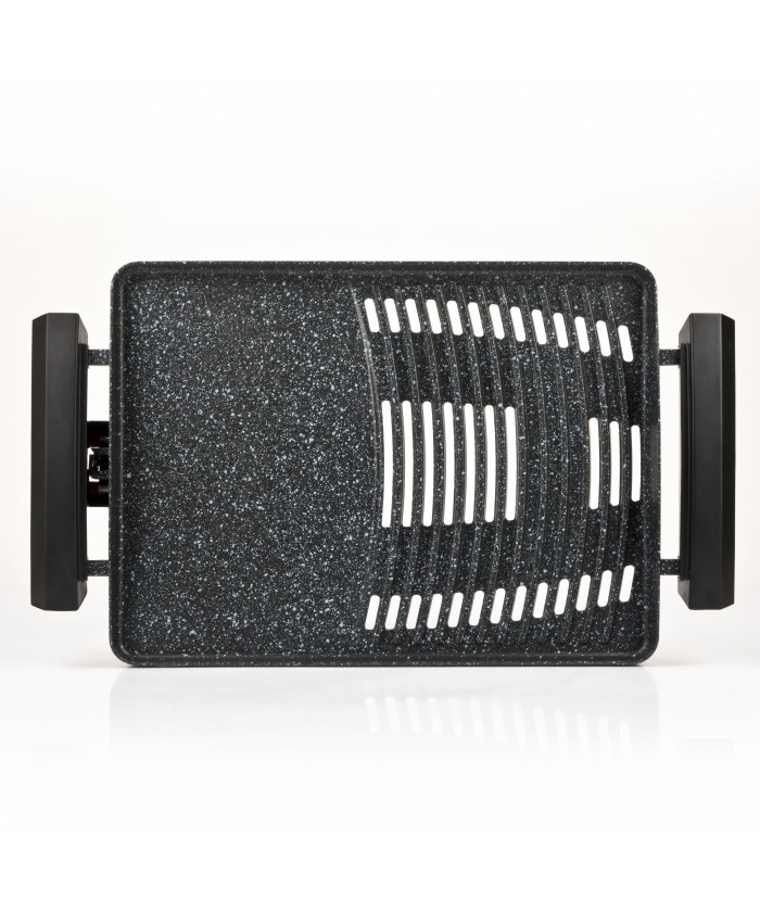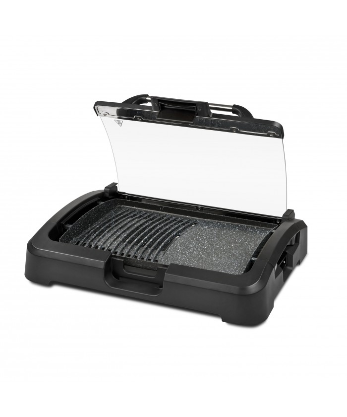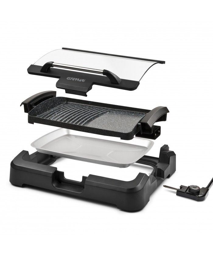 Avec Gratella XL vous pourrez satisfaire votre envie de griller toute l'année, que ce soit de la viande, du poisson ou des légumes, avec ce barbecue électrique vous obtiendrez toujours d'excellents résultats. La large surface de cuisson de 39 x 29 cm est suffisamment grande pour préparer un repas pour toute votre famille; la plaque est en matériau antiadhésif et permet à la fois la fonction grill et barbecue. L'élément chauffant intégré dans la plaque garantit une cuisson sans mauvaise odeur et une répartition parfaite de la chaleur, et à l'aide du thermostat réglable, vous pouvez cuire parfaitement et uniformément tous les aliments. Le couvercle en verre trempé permet une cuisson protégée: vous serez à l'abri des éclaboussures d'huile et de graisse et vous pourrez cuisiner même par temps froid, car toute la chaleur sera conservée à l'intérieur. Cette unité peut être complètement démontée pour la nettoyer facilement.