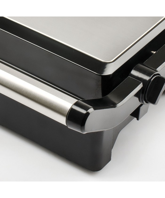 Grâce à la puissance de 1500 watts et à son ouverture de livre à 180 °, le grill Ardor peut être utilisé soit comme une machine à sandwich traditionnelle pour la préparation de savoureux panini et sandwichs américains, soit comme plaque de grill pour griller du poisson et de la viande en quelques minutes . De taille compacte, cette unité dispose de voyants de fonctionnement et de température et est équipée de 2 plaques antiadhésives de 25 x 15,5 cm qui garantissent une cuisson naturelle, saine et sans gras.