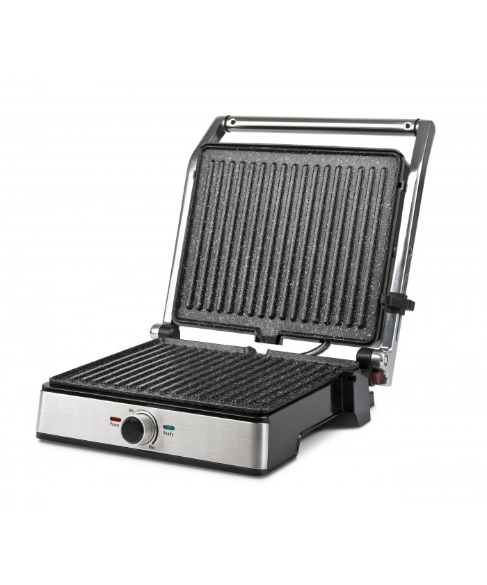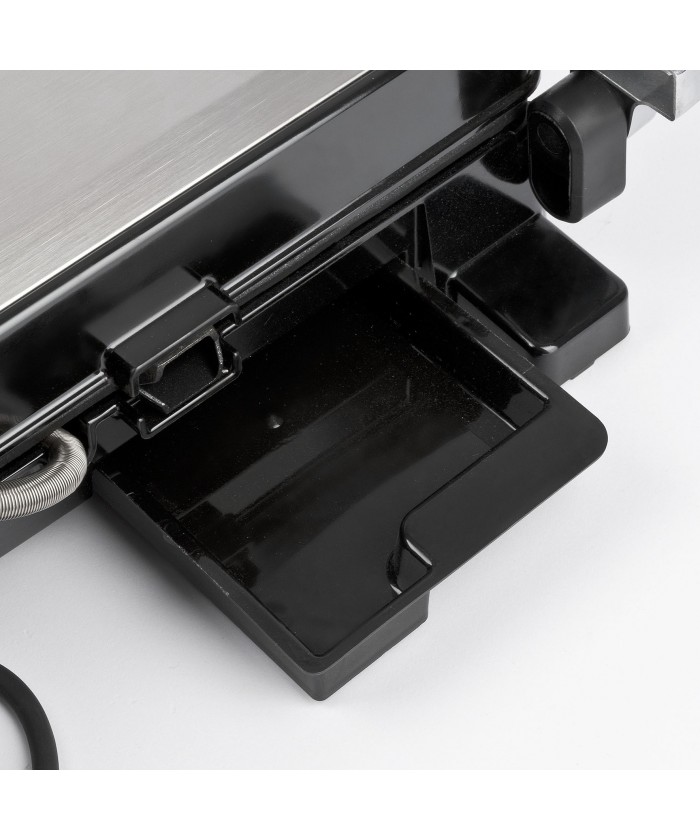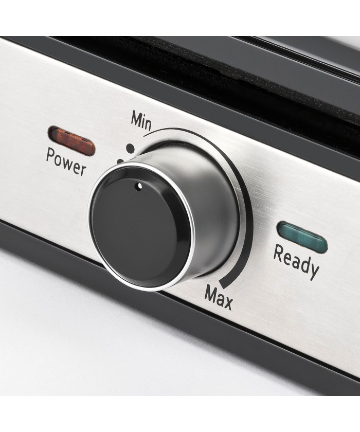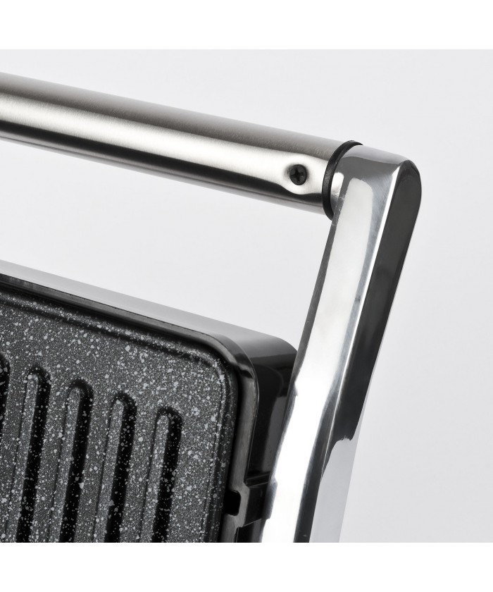 De taille compacte et en acier inoxydable, LAVICA EASY offre plusieurs fonctionnalités : il peut être utilisé comme un contact-grill traditionnel, un presse-panini pour préparer de savoureux sandwichs, comme une plaque de cuisson demi-plaque ou complètement ouvert pour griller du poisson ou de la viande, doublant la surface de cuisson. L'appareil est équipé de deux grandes plaques amovibles en pierre antiadhésives qui permettront une cuisson plus saine, naturelle et sans graisse. Il dispose d'une grande poignée anti-brûlure, d'un bouton de réglage de la température et d'un verrou de grille pour maintenir l'appareil fermé afin de le ranger verticalement et de prendre moins de place.