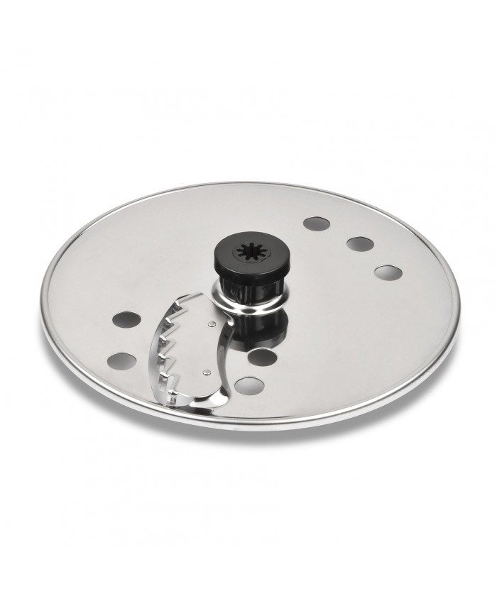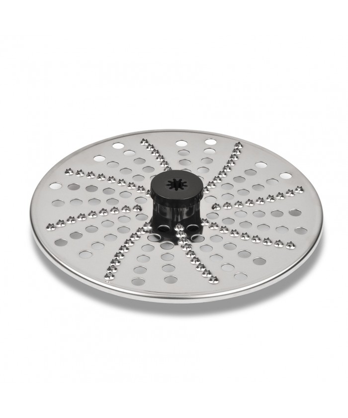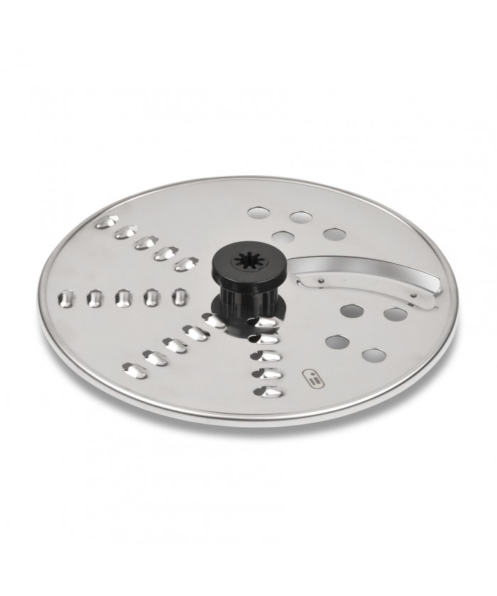 - 3 disques réversibles inox, pour trancher et julienne de légumes, pour écraser et râper, pour frites