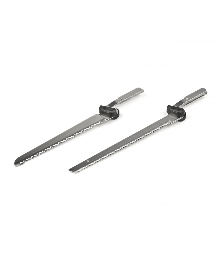 Le couteau électrique SpeedyCut est la combinaison parfaite entre excellentes performances et polyvalence d'utilisation : équipé d'un puissant moteur à courant continu et d'une poignée ergonomique, il est livré avec deux jeux de couteaux crantés en acier inoxydable, qui assurent une coupe nette et précise aussi bien de la viande que du pain. Simple et rapide à utiliser, ce couteau électrique est capable de couper votre pain même surgelé, de trancher sans effort les fromages affinés et de réaliser des tranches précises de dinde et de rôti de bœuf. Les lames sont facilement amovibles et vont au lave-vaisselle.