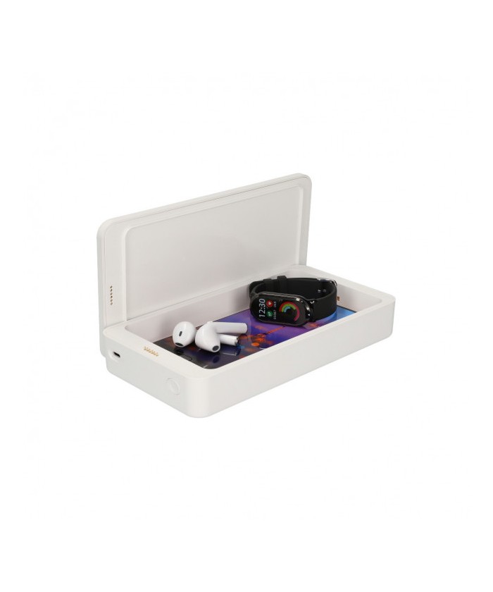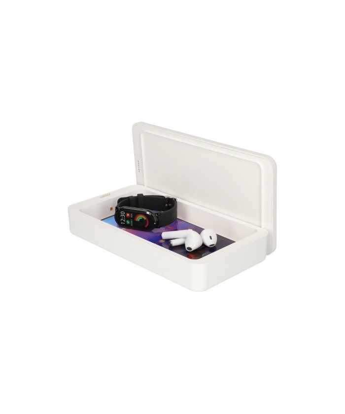 Boîte de stérilisation à rayons ultraviolets chargée par câble de type C. Lorsque des bactéries, des virus et d'autres germes sont exposés à des longueurs d'onde germicides de la lumière UV, ils deviennent incapables de se reproduire et d'infecter un organisme. Ses mesures sont parfaites pour désinfecter les mobiles rapidement et confortablement. Il faut environ 20 minutes pour terminer la désinfection
