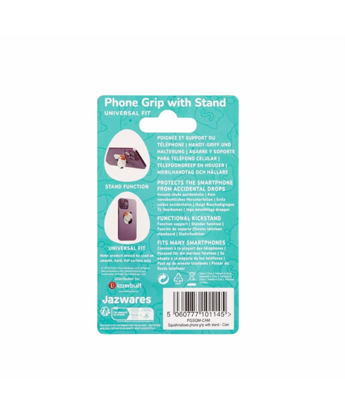 Dérivés de la licence a succès des peluches SQUISHMALLOWS. Votre personnage Squishmallow préféré offre une prise ferme sur votre précieux téléphone mobile - donc moins de risques de le laisser tomber. Peut être installé sur la plupart des téléphones et coques de téléphone grâce à un tampon adhésif puissant Se replie pour s'adapter parfaitement à votre téléphone Se déplie pour devenir un support de bureau utile pour votre téléphone afin de permettre une visualisation mains libres. Un tampon Squishy pour compléter le thème Squishmallow