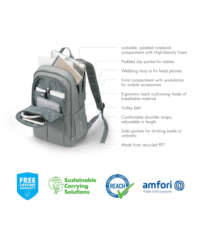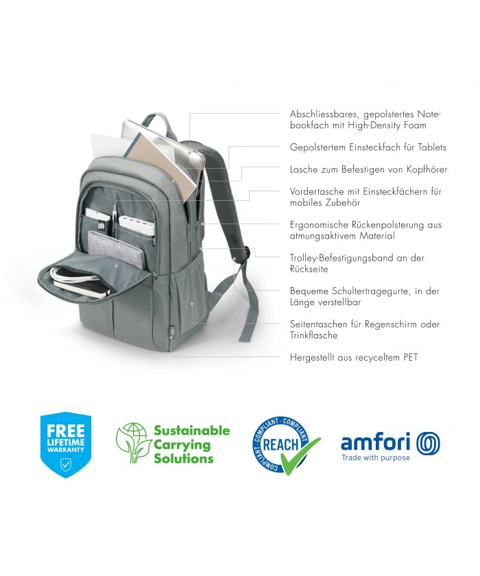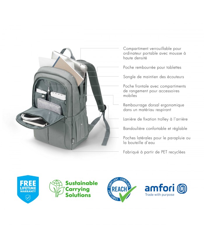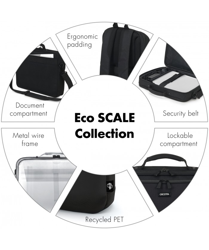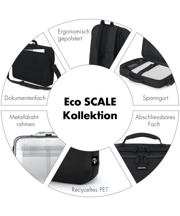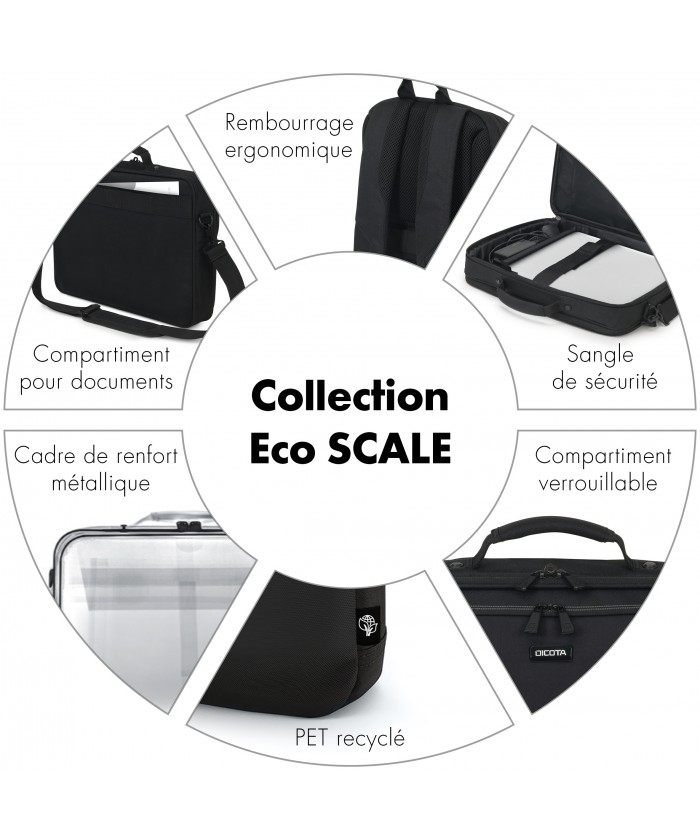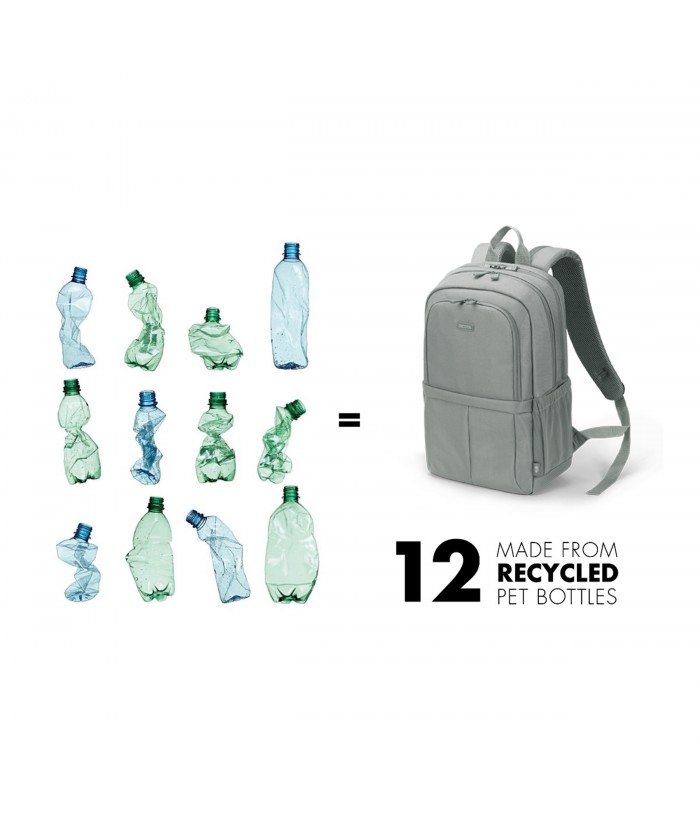 Durabilité vécue avec une conscience claire - les produits de la famille SCALE sont fabriqués à partir de PET recyclé. Un recyclage constant aide à préserver les ressources. Chez DICOTA, c'est la base de nos solutions innovantes. Dans le matériau principal du sac à dos SCALE, 12 bouteilles en PET reçoivent une nouvelle vie - sans compromis sur la qualité, la fonctionnalité ou le design. Le sac à dos offre une excellente protection pour vos appareils et est confortable et facile à transporter. Conçu pour une utilisation quotidienne. Équipé de fonctions pratiques qui vous facilitent la vie.