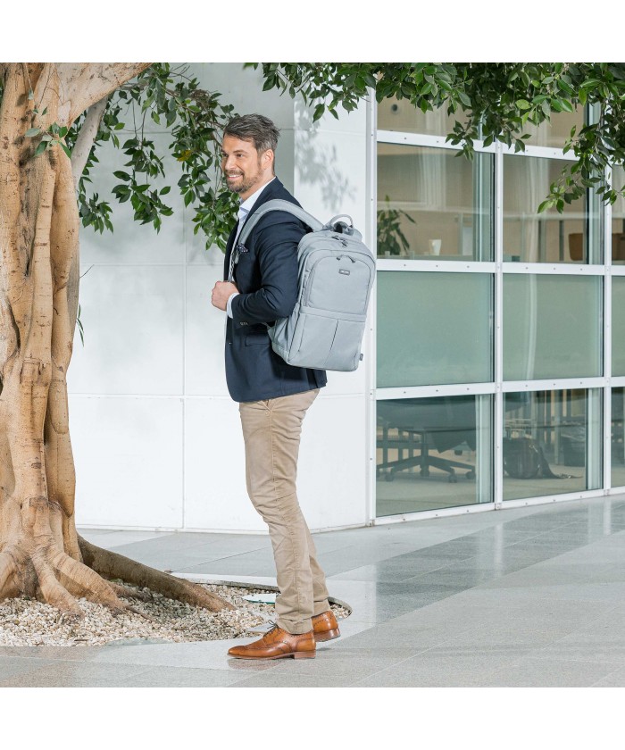 Il y a une double protection pour votre appareil de 13 à 15,6" dans le compartiment verrouillable pour ordinateur portable : avec un rembourrage en mousse haute densité (HDF) et une fixation fiable grâce à la sangle de fixation élastique. Le compartiment principal spacieux offre beaucoup d'espace pour les papiers ou tout ce que vous Grâce à un compartiment pour tablette jusqu'à 10,5" et une sangle pour transporter vos écouteurs avec précaution, vos compagnons mobiles sont parfaitement en sécurité. La poche avant spacieuse vous aide à garder les choses organisées grâce à sa division fonctionnelle en compartiments pour un smartphone, une banque d'alimentation, des stylos et d'autres articles. Les bouteilles d'eau et les parapluies peuvent être rangés dans les poches extérieures, ce qui permet d'économiser de l'espace à l'intérieur du sac à dos. Le rembourrage dorsal ergonomique, la bandoulière confortable et le piège de fixation du chariot à l'arrière assurent le confort lorsque vous transportez le sac au travail, à l'université ou pour des voyages plus longs. Disponible en quatre variations de couleur.