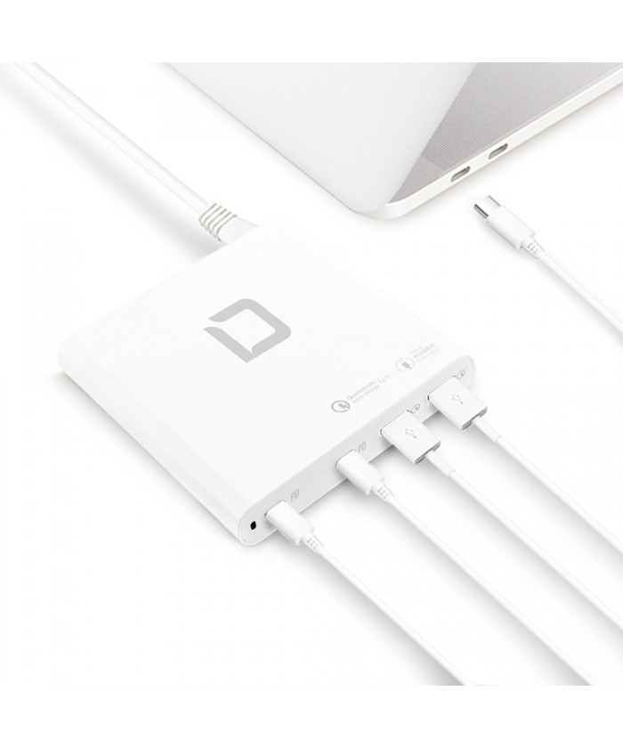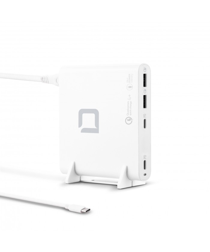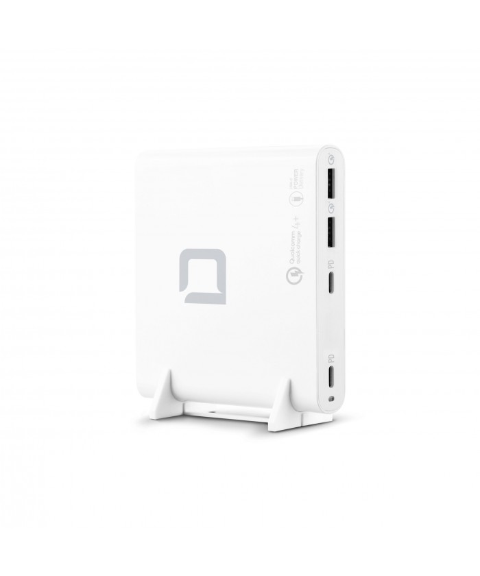 Le chargeur peut être utilisé dans plus de 180 pays et dispose de deux sorties USB-C avec Power Delivery 3.0 et de deux ports USB-A avec la technologie Qualcomm Quick Charge 4.0+. La puissance maximale de la borne de recharge est de 120W. La tension de sortie (5 - 20 V) et le courant de charge (jusqu'à 5 A) s'adaptent automatiquement aux appareils connectés. Le système de contrôle intelligent préserve votre batterie et offre en même temps une protection fiable contre les surintensités, les surtensions, les courts-circuits et la surchauffe. Design élégant, forme compacte et poids de seulement 240 grammes - le compagnon idéal pour une énergie rapide et efficace à la maison, au bureau ou sur la route. Comprend un support en plastique pour éviter la surchauffe.