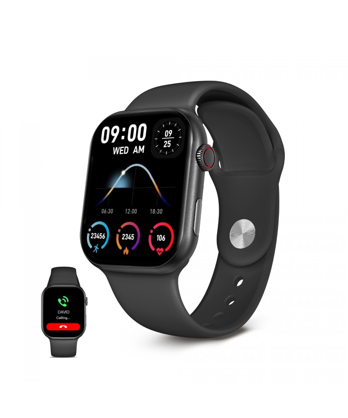 Boîtier de montre connectée : 45,5 x 38,4 x 10,9 mm. Matériau : ABS.