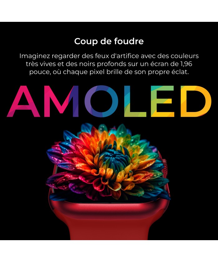 Écran de montre connectée : 1,96", multi-touch. Matériau : verre trempé.
