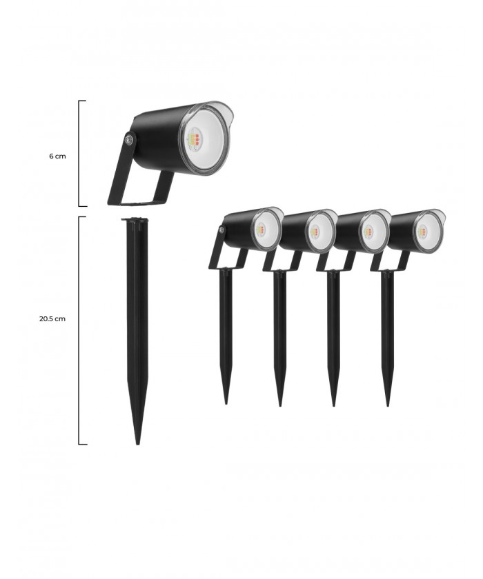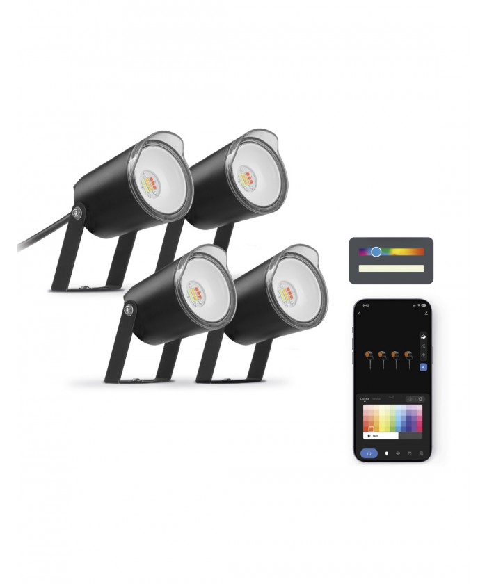 Illuminez votre jardin ou les extérieurs de votre maison avec ce kit de 4 spots intelligents SmartLED connectés à l'application TuyaSmart. Grâce à sa technologie RGBWIC qui associe les couleurs RGBIC à la lumière blanche 3000K, il sera très facile de créer des ambiances personnalisées et uniques. Résistant à la pluie grâce à sa protection IP65 et très facile à fixer directement au mur ou au sol à l'aide des piquets inclus.