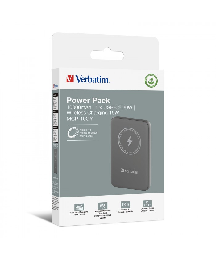 Dotée d'une capacité de charge magnétique sans fil de 15 W et d'un PD de 20 W, la banque d'alimentation Charge 'n' Go de Verbatim offre une charge rapide et efficace pour vos appareils. Il suffit de la fixer magnétiquement à votre téléphone pour le recharger sans fil, lorsque vous êtes en déplacement. Son design fin et portable lui permet de se glisser facilement dans une poche ou un sac à main.