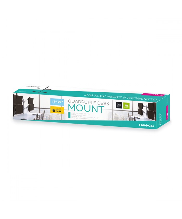 Le support pour fixer quatre moniteurs au bureau est une solution esthétique qui économise de l'espace, maintient l'ordre et les règles d'ergonomie. L'utilisateur peut librement ajuster la position du moniteur à 180 degrés. La poignée est faite d'un matériau de haute qualité, ce qui la rend très stable et durable.