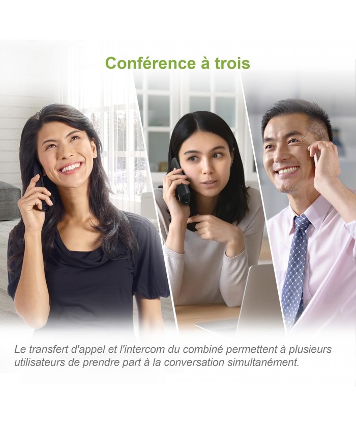 Voyez qui vous appelle grâce à l'identification de l'appelant/appel en attente. Le combiné affiche le nom, le numéro, l'heure et la date des appels entrants.