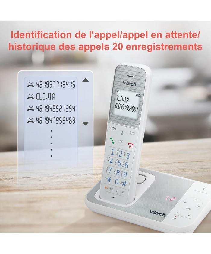 Voyez qui vous appelle grâce à l'identification de l'appelant* / appel en attente. Le combiné affiche le nom, le numéro, l'heure et la date des appels entrants.