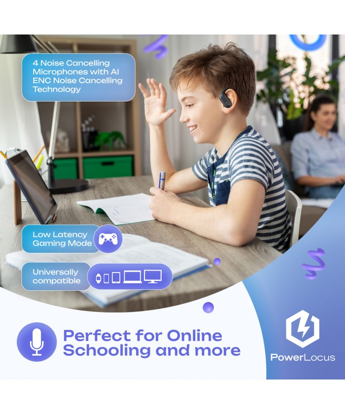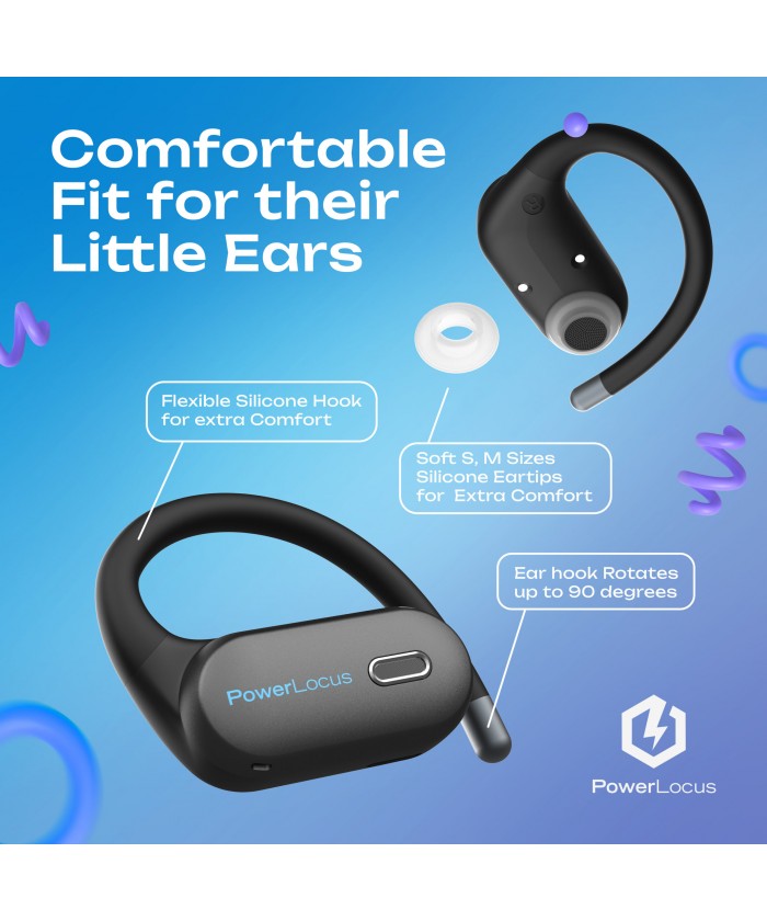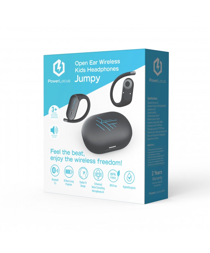 Ressentez le rythme, profitez de la liberté sans fil. Découvrez le PowerLocus Jumpy , le casque sans fil ouvert idéal, spécialement conçu pour les enfants. Grâce à sa conception ouverte innovante, ce casque léger offre un maintien sûr et confortable, permettant aux enfants de profiter de leur musique préférée, de leurs livres audio et de leurs appels tout en restant attentifs à leur environnement. À la maison, en classe ou en déplacement, le Jumpy offre une expérience audio immersive sans compromettre la sécurité. Conçu pour le confort, conçu pour le jeu. Avec un poids de seulement 9,1 grammes , Jumpy est conçu pour un confort optimal tout au long de la journée grâce à sa conception stable qui reste en place même pendant les jeux actifs. Fabriqués à partir de matériaux hypoallergéniques sans BPA , ces écouteurs sont sans danger pour les peaux délicates et garantissent une expérience d'écoute sans souci. De plus, grâce à une incroyable autonomie de 30 heures , les enfants peuvent s'amuser sans interruption. Expérience audio immersive... Un son cristallin et une liberté d'écoute totale avec le PowerLocus Jumpy . Équipé de transducteurs audio avancés, ce casque offre un son riche et équilibré sans gêner les oreilles. Musique, livres audio ou appels : les enfants peuvent profiter de chaque rythme et de chaque mot avec clarté, tout en restant connectés à leur environnement pour une expérience d'écoute plus sûre. Confort toute la journée, ajustement parfait... Conçu pour les enfants, le PowerLocus Jumpy est ultra-léger et offre un maintien stable qui reste confortablement en place toute la journée. Son design ouvert élimine la pression sur les oreilles, tandis que ses matériaux hypoallergéniques sans BPA garantissent un ajustement doux et sûr, même pour les peaux les plus sensibles. Idéal pour les jeux actifs, les séances d'étude et bien plus encore ! Des heures de jeu sans fin, du plaisir toute la journée... Avec une impressionnante autonomie de 30 heures , le PowerLocus Jumpy alimente les enfants du matin au soir. Qu'ils écoutent de la musique, des livres audio ou discutent avec leurs amis, ils peuvent compter sur une liberté sans fil ininterrompue. De plus, grâce à la charge rapide, un simple coup de pouce les assure d'être toujours prêts pour la prochaine aventure ! Appels clairs et écoute sécurisée... Équipé de quatre microphones antibruit ENC , le PowerLocus Jumpy garantit une qualité vocale cristalline pour les appels, les cours en ligne et les conversations vocales. Les enfants peuvent communiquer sans effort, même dans les environnements bruyants. De plus, avec une limite de volume intégrée de 85 dB , ce casque protège les oreilles des jeunes enfants en les empêchant d'être exposés à des niveaux sonores excessifs, offrant ainsi une expérience d'écoute sûre et agréable à chaque fois.