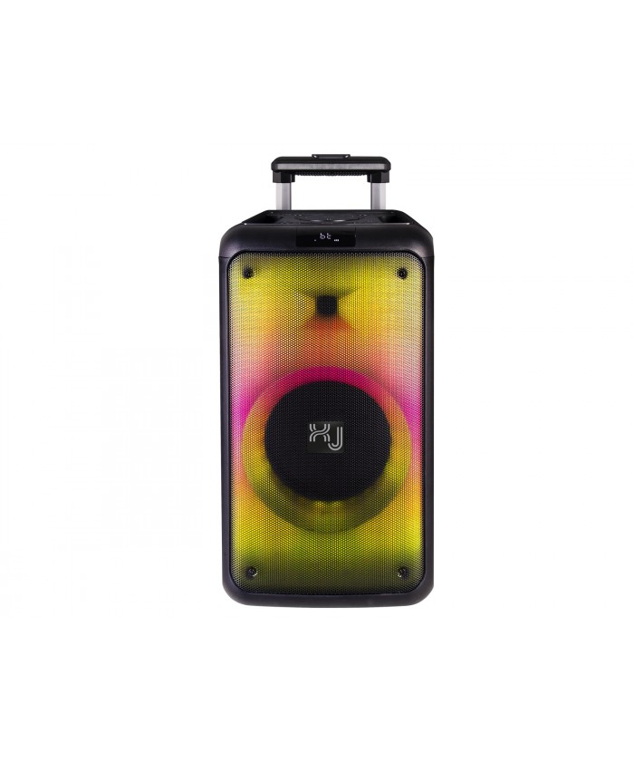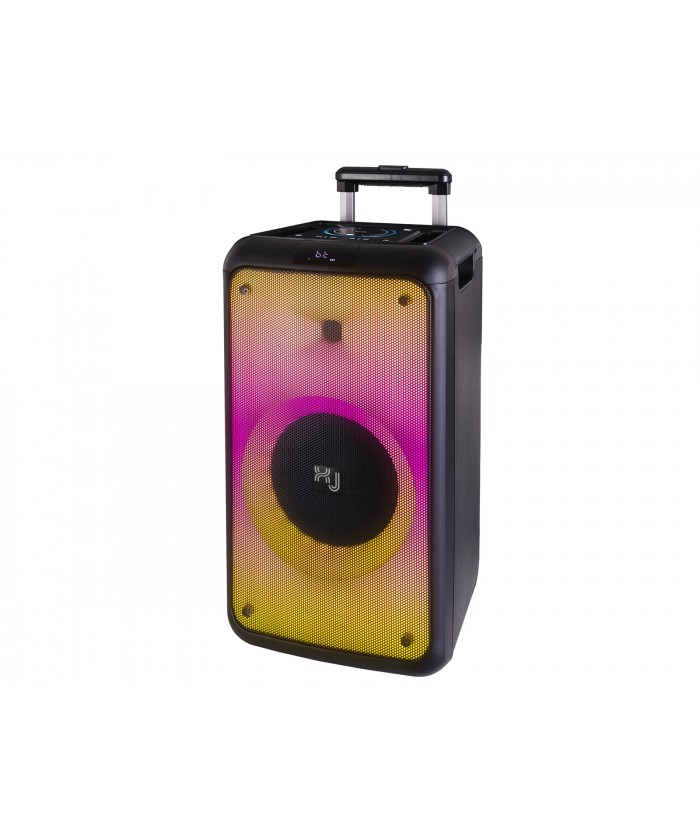 Avec . Avec la fonction Karaoké , les deux entrées microphone 6,3 mm et le microphone sans fil inclus dans le package, vous pourrez vous amuser à chanter, seul ou entre amis, sur les notes de vos chansons préférées, animant chaque représentation avec l' éclairage discolight fire flame . Le haut-parleur amplifié XJ 5000 de 180 W est doté de doubles poignées pour un transport facile, est conçu pour être installé sur des supports de poteaux pour offrir d'autres options de positionnement et est équipé d'une télécommande à contrôle complet pour gérer toutes ses fonctions même à distance. Il peut être alimenté sur secteur , avec une batterie interne rechargeable ou par une batterie auxiliaire via l'entrée 12V .