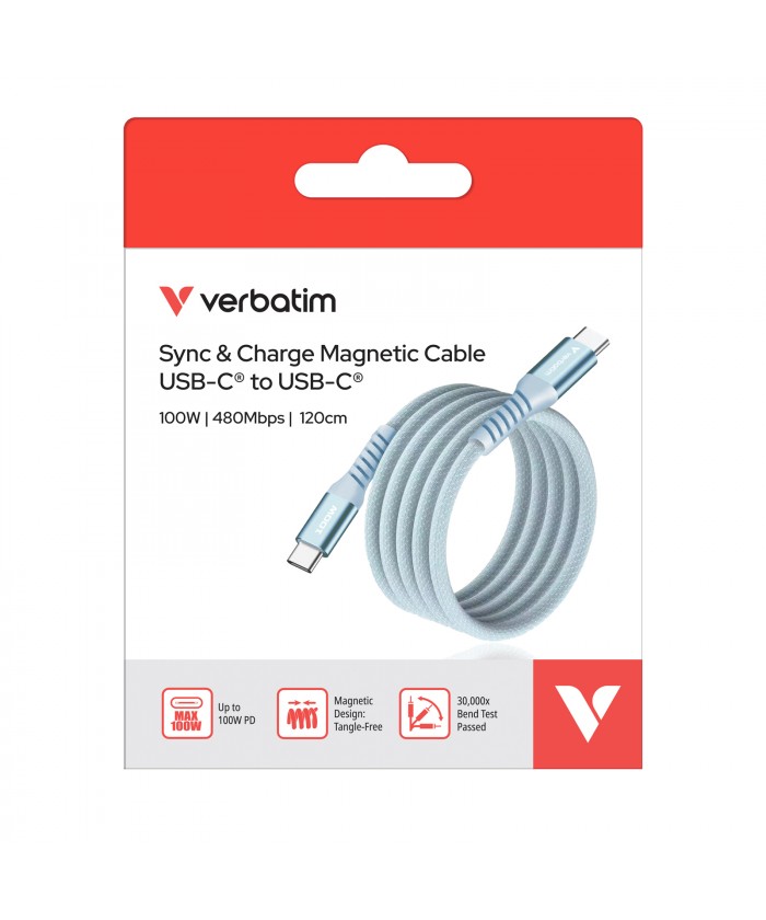 Câble Magnétique Verbatim Sync & Charge USB-C vers USB-C 100W