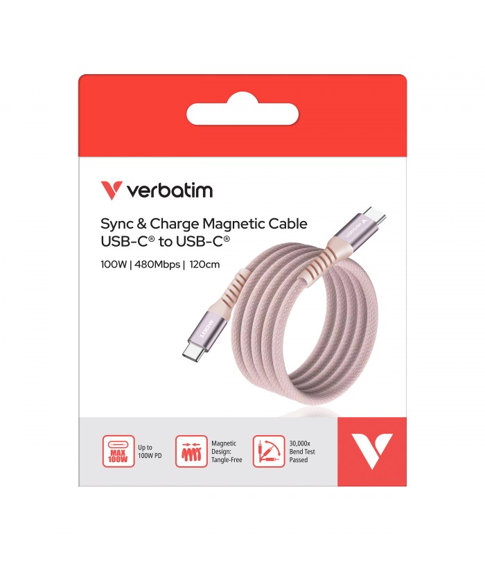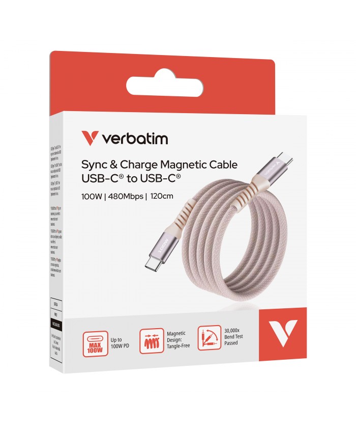 Câble Magnétique Verbatim Sync & Charge USB-C vers USB-C 100W
