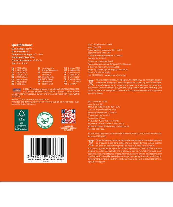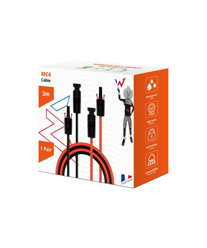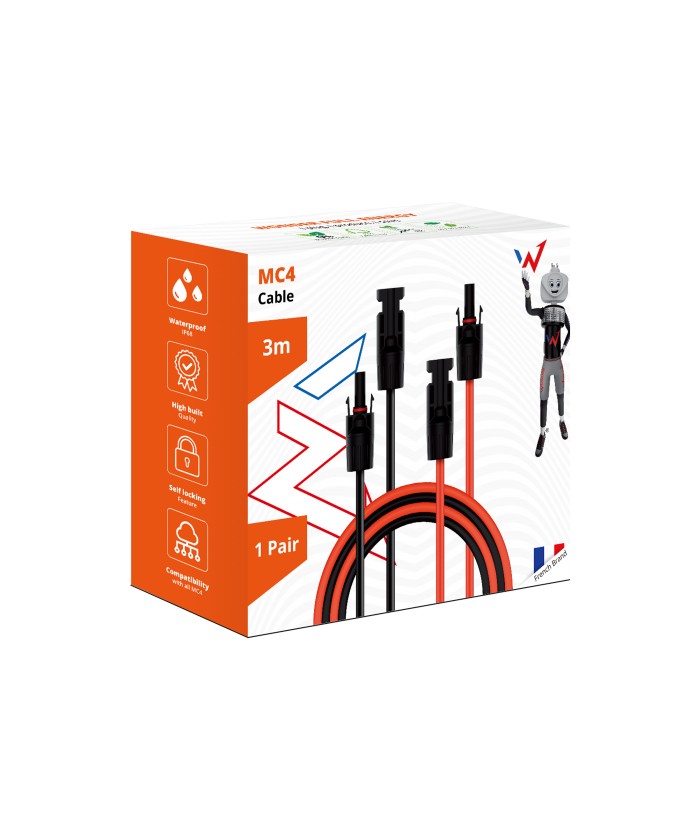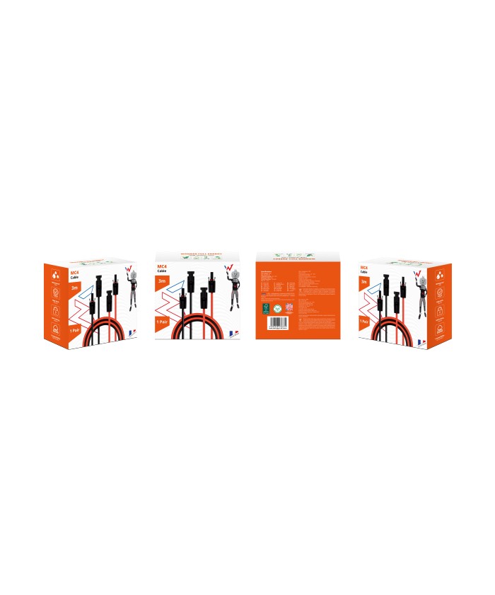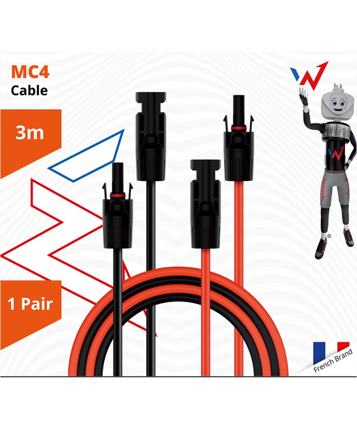 Câbles pour connecter des panneaux solaires à des onduleurs ou pour créer une rallonge entre panneaux solaires. Excellente résistance au vieillissement et aux UV.