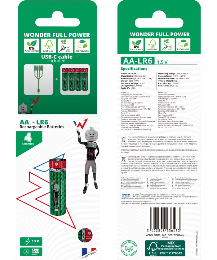 PACK DE 4 ACCUS LR06 AA RECHARGEABLE USB C WONDER