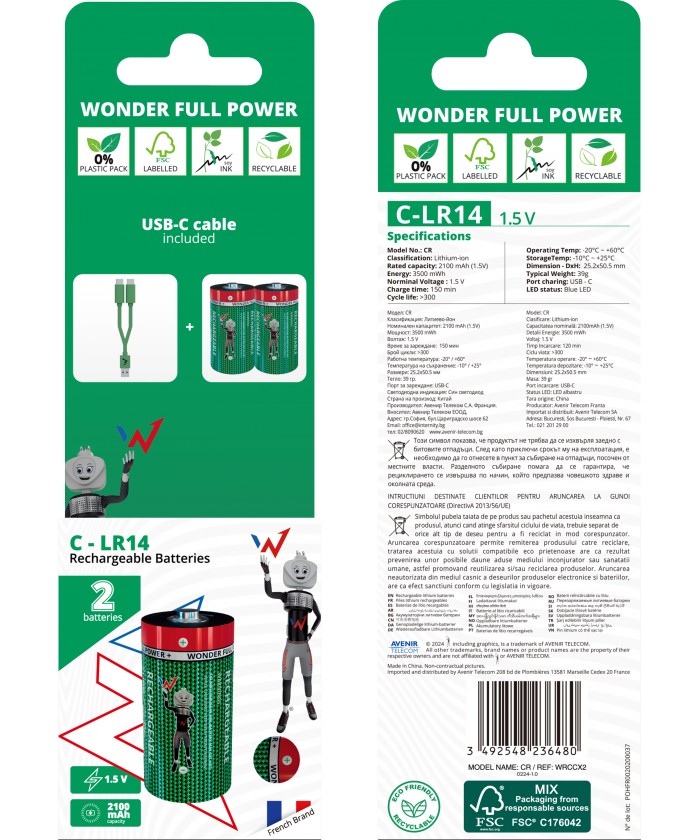 PACK DE 2 ACCUS LR14 C RECHARGEABLE USB C WONDER