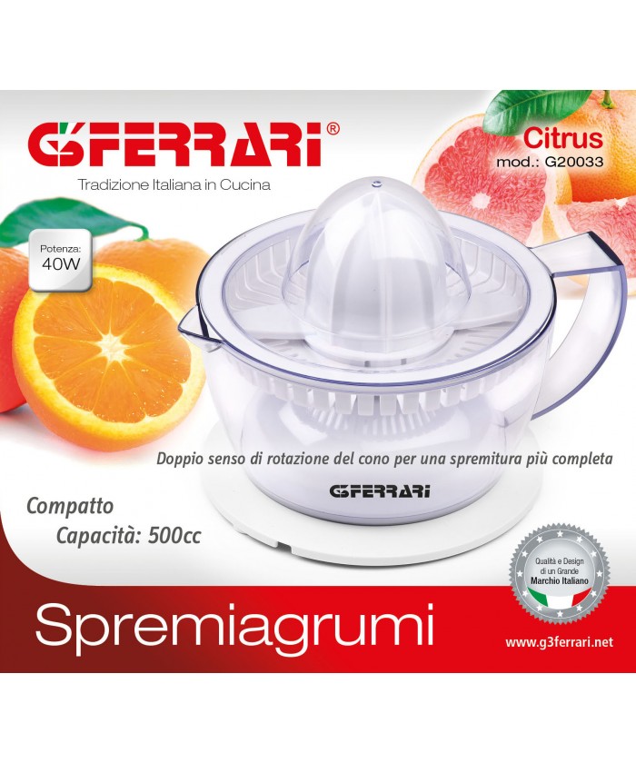 Citrus est idéal pour la préparation de jus doux. Grâce à la coupe double, il peut exprimer facilement des agrumes de différentes tailles. La grande tasse convient aux grands agrumes ou aux pamplemousses, le petit pour les agrumes plus petits. Le récipient amovible peut être placé au réfrigérateur pour refroidir le jus ou il peut être utilisé comme une carafe pour servir. La petite taille rend Citrus très facile à stocker et facile à utiliser, la solution idéale pour les petites quantités de jus.