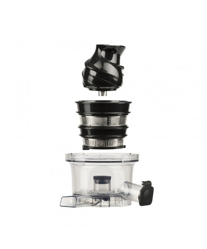 La vis sans fin, le récipient, le couvercle et les filtres, fabriqués à partir de matériaux de haute qualité, garantissent une résistance élevée et des jus de qualité supérieure. Le bouchon de sortie permet de mélanger différents jus directement dans le récipient.