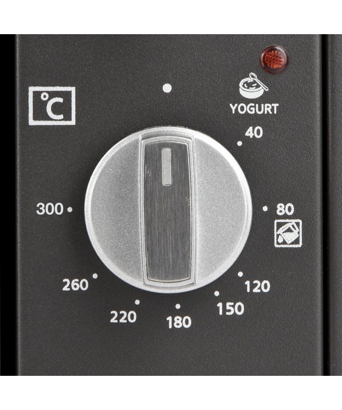 L'accessoire rôtisserie et les 6 fonctions de cuisson supplémentaires font du Grancotto 58 un four "Full Function" . Un poulet rôti alléchant ? Une brochette de viande croustillante au bon moment ? Avec le set de rôtisserie, vous pouvez utiliser votre four ventilé pour des grillades parfaites . Avec le thermostat réglable de 40° à 300°C vous pourrez réaliser le type de cuisson que vous préférez, sans rien à envier aux maîtres du barbecue.