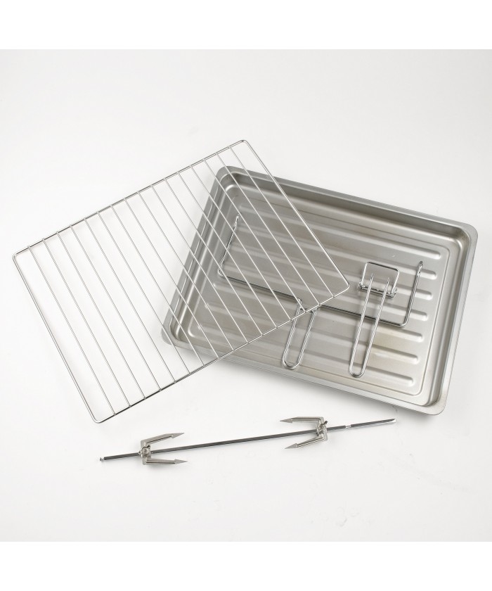 - Lumière rouge pour fonctionnement • Accessoires: 1 plateau, 1 gril, 1 poignée de plateau, 1 rôtissoire, 1 poignée rôtissoire