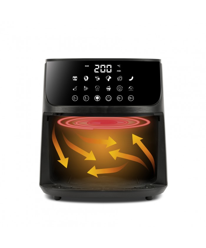 Cuisiner sainement, sans renoncer à la saveur et sans économiser d'énergie ? Absolument oui ! Avec notre friteuse à air Ecofrit Black, vous pourrez préparer des fritures savoureuses et croustillantes avec jusqu'à 80% de matières grasses en moins ! En effet, la technologie de circulation d'air rapide vous permet de cuisiner des aliments sains et délicieux en très peu de temps avec peu ou pas d'huile.