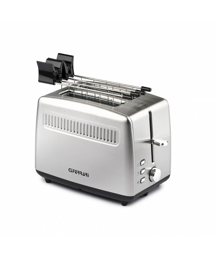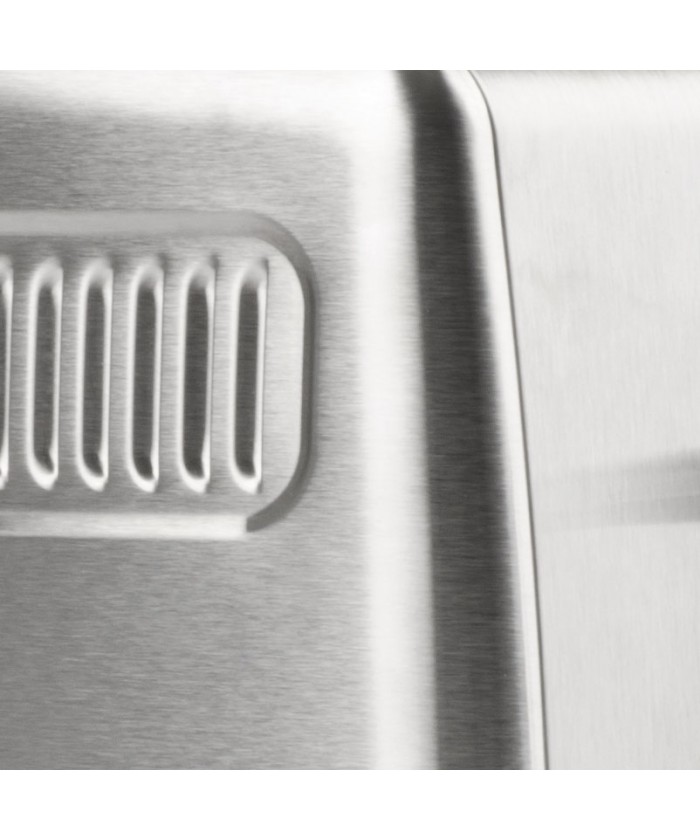 Tramezzo est un grille-pain moderne et fonctionnel avec un corps en acier inoxydable, capable d'accueillir facilement de grandes tranches de pain pour la préparation de vos sandwiches préférés, grâce à ses fentes extra larges qui le rendent idéal pour chauffer les bagels, les muffins ou votre pain fait maison. Equipé d'une fonction d'arrêt automatique et de dégivrage pour une facilité d'utilisation maximale, Tramezzo est équipé d'un minuteur et d'un sélecteur de brunissement qui vous permet de régler votre degré de cuisson préféré, les indicateurs de lumière de fonction et les murs isolés pour une sécurité maximale. Très rapide et facile à nettoyer, cet appareil dispose d'un bac à miettes pratique sous son corps tandis que les deux pinces sont en acier inoxydable pour une hygiène maximale.