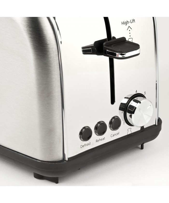 Un grille-pain classique, esthétique avec un boîtier en acier inoxydable. Essentiel dans son utilisation, il permet de cuire des toasts ou des tranches de pain. Grâce aux commandes supplémentaires dont il est équipé, en plus de programmer la durée de cuisson, il peut cuire, décongeler, chauffer et arrêter la cuisson. Grâce à sa puissance de 800W il peut griller uniformément en peu de temps et garantir de bonnes économies d'énergie. Il est équipé d'un bac à miettes pour faciliter le nettoyage et d'une pince en acier inoxydable pour une sécurité maximale au contact des aliments.