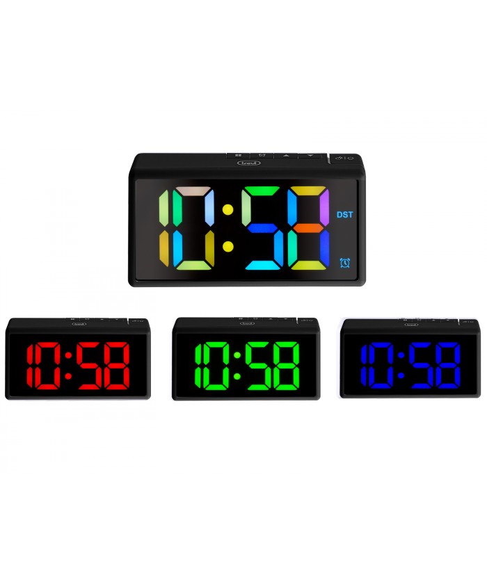 intégrée pour recharger vos appareils externes, éliminant ainsi le besoin de chercher des prises libres. De plus, vous pouvez choisir entre l'alimentation par piles (3 piles AAA non incluses) ou utiliser l' adaptateur secteur inclus pour plus de commodité. Ne perdez pas de temps et choisissez le réveil numérique Trevi EC 886 avec grand écran multicolore pour avoir un réveil fiable et polyvalent qui s'adapte à chacun de vos besoins quotidiens.