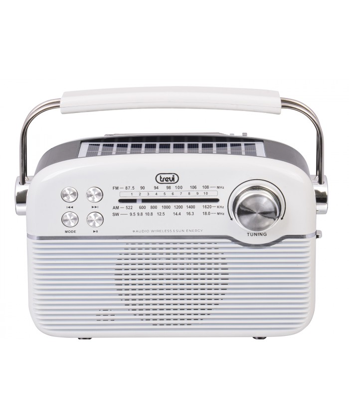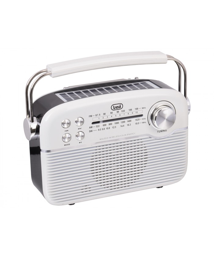 Découvrez la radio solaire portable multibande sans fil Trevi RA 7F50 BT, compatible USB et Micro SD , idéale pour toutes vos aventures, où que vous soyez, sans risque de panne de batterie.