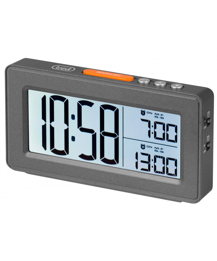 L' horloge numérique Trevi SLD 3P40 avec deux alarmes et grand écran LCD est alimentée par deux piles AAA (non fournies), pour une longue durée de vie