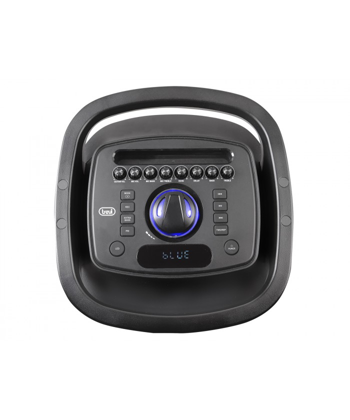 Le design moderne et attrayant du Trevi XF 3150 KB, associé aux lumières à effet Discolight Multicolore , crée une atmosphère festive et captivante. L'enceinte XFest 130 W sans fil USB Micro SD AUX-IN TWS Trevi XF 3150 KB est alimentée par le secteur et par une batterie interne rechargeable. Elle peut également être contrôlée à distance grâce à la télécommande Full Control