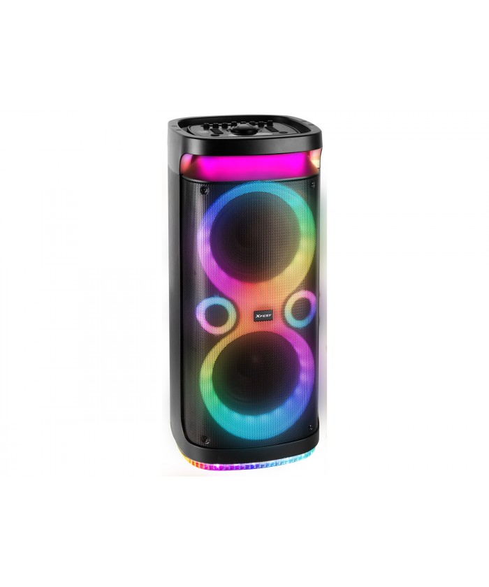 Imaginez une enceinte portable, puissante et polyvalente, prête à transformer n'importe quel environnement en piste de danse, scène de karaoké ou salle de conférence : l'enceinte XFest 130 W sans fil USB Micro SD AUX-IN TWS Trevi XF 3150 KB est tout cela et bien plus encore. Équipée d'un système Bass Reflex 2 voies avec deux haut-parleurs de 8 pouces et un tweeter de 1 pouce , elle offre un son riche, profond et défini.
