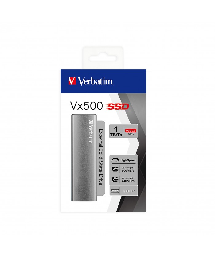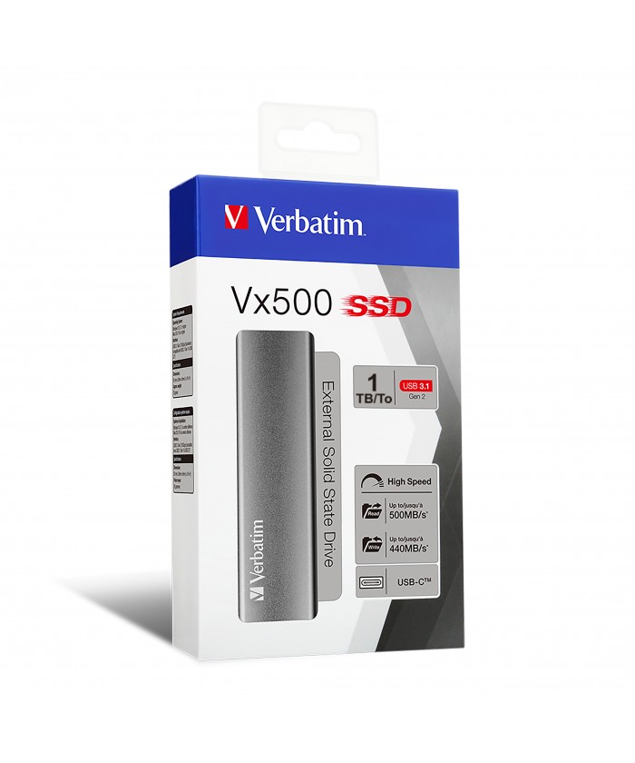 Le disque SSD externe Vx500 de Verbatim utilise une mémoire flash haute vitesse et un contrôleur USB 3.2 Génération 2 qui est optimisé pour offrir des performances inégalées