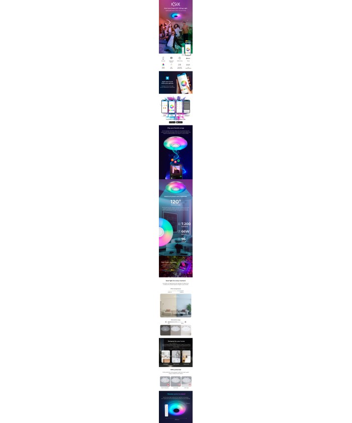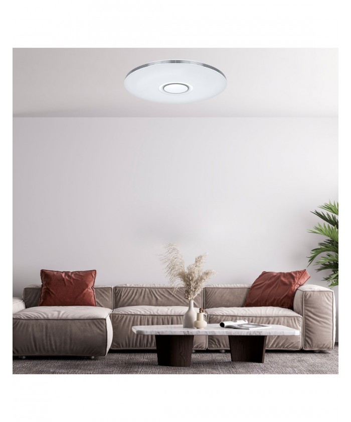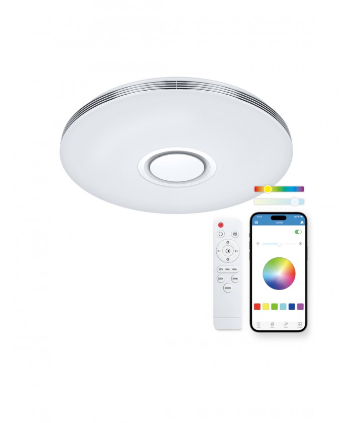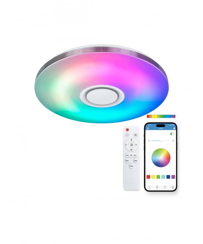 Avec l'application iLink, vous aurez le contrôle total du plafonnier entre vos mains. Sélectionnez les couleurs, synchronisez l'éclairage et la musique, choisissez parmi une variété de modes scène, réglez des minuteries et bien plus encore. Il intègre Bluetooth 4.0, assurant toujours une connexion stable. De plus, il comprend une télécommande avec laquelle vous pourrez contrôler l'éclairage du plafonnier de manière plus analogique lorsque vous n'avez pas votre téléphone à portée de main.