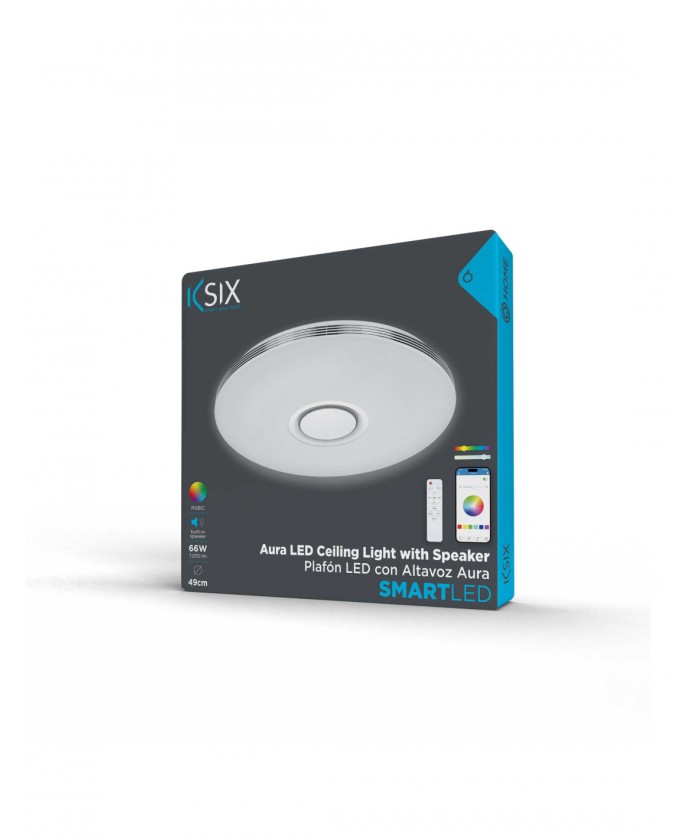 Apportez de la couleur à votre musique avec le plafonnier Ksix Aura SmartLED. Grâce à son haut-parleur intégré vous pourrez écouter votre musique préférée tout en éclairant votre espace. Créez des environnements personnalisés grâce à sa technologie de couleur RGBIC et ses tons blancs CCT. De plus, avec l'application iLink, vous pourrez profiter de la grande variété de fonctionnalités qu'elle offre. Découvrez une nouvelle dimension de lumière et de sons avec le plafonnier Ksix Aura.