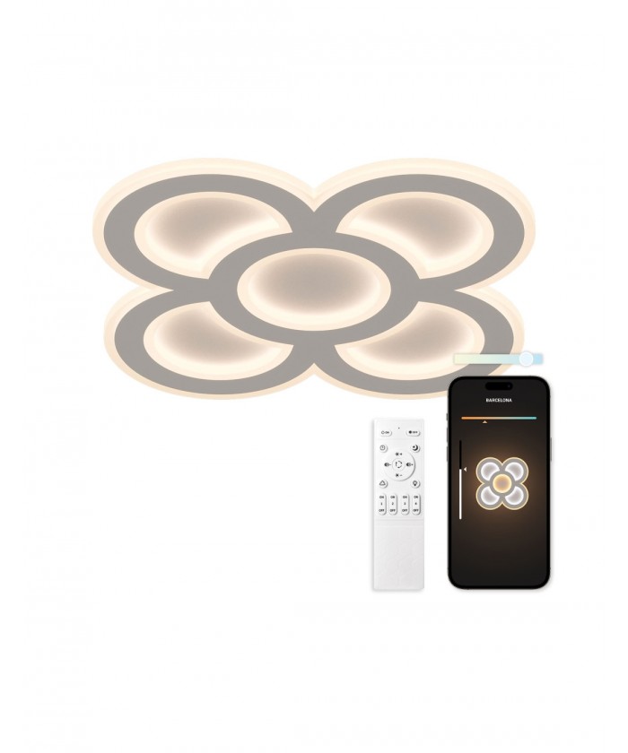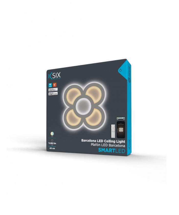 Égayez et apportez du style à tous les espaces de votre maison avec le plafonnier Ksix Barcelona SmartLED. Avec contrôle de teinte blanche CCT et un flux lumineux de 11 387 lumens pour adapter l'éclairage selon vos préférences et vos besoins. Contrôlable depuis votre téléphone grâce à l'application Tuya Smart, à partir de laquelle vous pourrez profiter et explorer des fonctionnalités infinies. Il est également compatible avec les assistants vocaux comme Alexa et Google Assistant. Tout cela avec un design inspiré de la fleur de Barcelone qui attirera l'attention de tous.