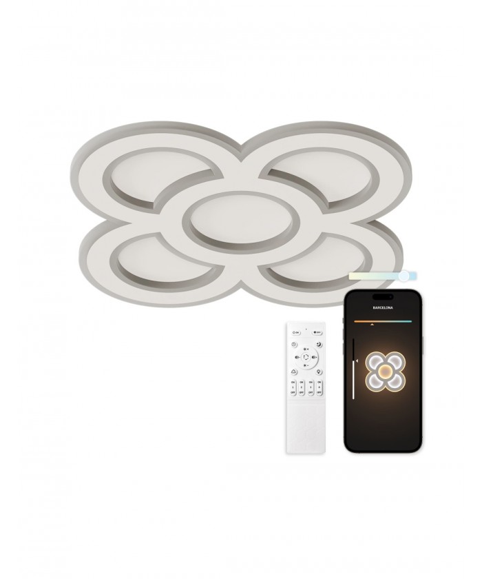 Le plafonnier SmartLED Barcelona fonctionne avec l'application Tuya Smart via une connexion WiFi afin que vous puissiez contrôler facilement toutes ses fonctionnalités. D'un simple toucher, vous pouvez modifier la température de la lumière, augmenter sa luminosité et sélectionner des modes de scène prédéfinis pour que le plafonnier affiche 2 nuances différentes simultanément. Il est également compatible avec les assistants vocaux tels qu'Alexa et Google Assistant afin que vous puissiez utiliser toutes les fonctions du plafonnier à l'aide de simples commandes vocales. Et si votre téléphone est à court de batterie ou est hors de portée, ne vous inquiétez pas, le plafonnier comprend une télécommande pour contrôler l'éclairage.