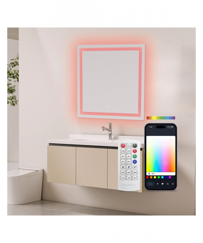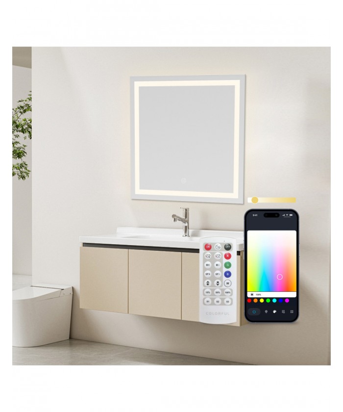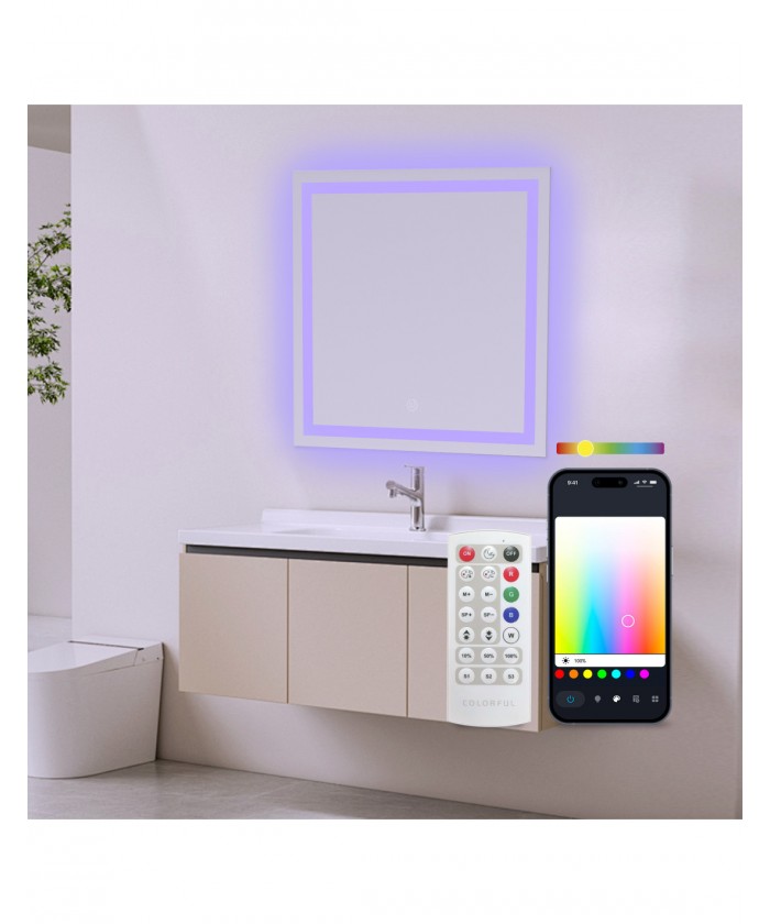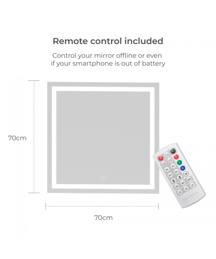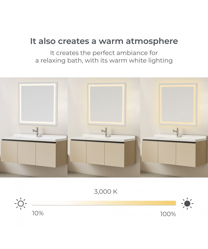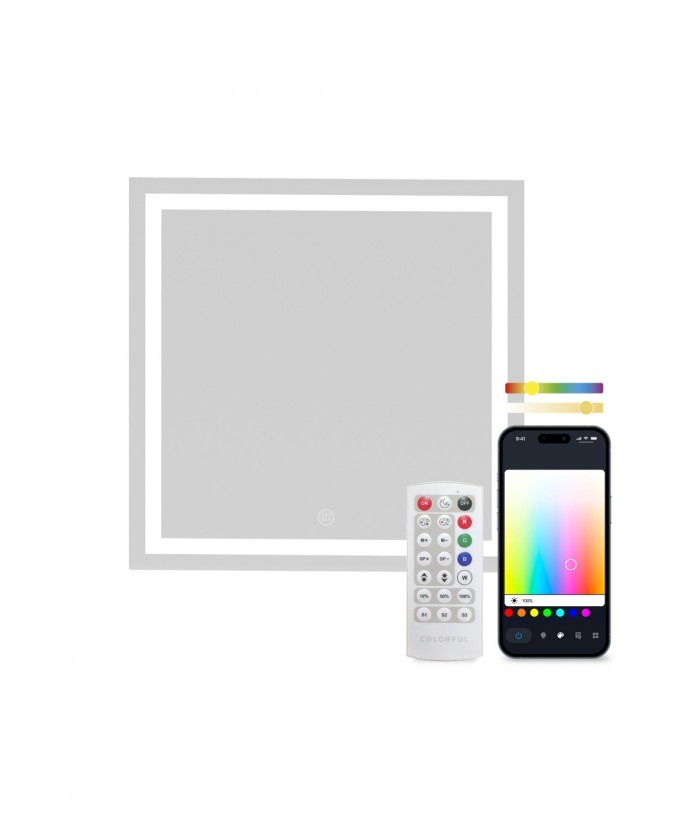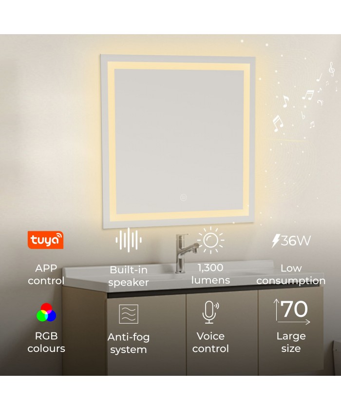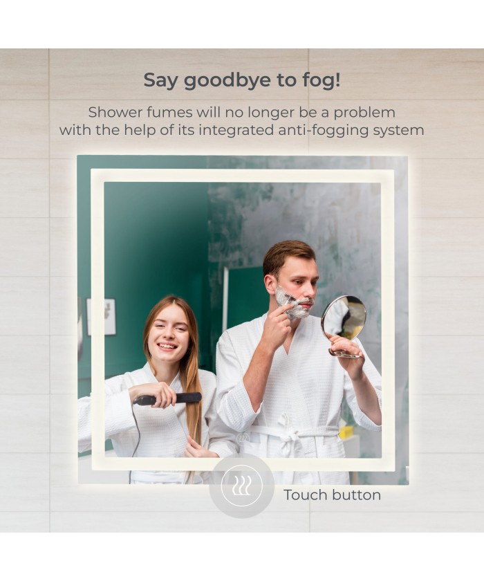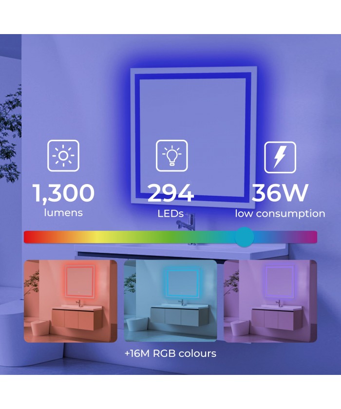 Son design carré de 70 x 70 cm est idéal pour l'intégrer dans votre salle de bain ou vos toilettes. De plus, sa protection IP44 garantit sa résistance et sa sécurité dans les environnements humides et en présence de vapeur d'eau.