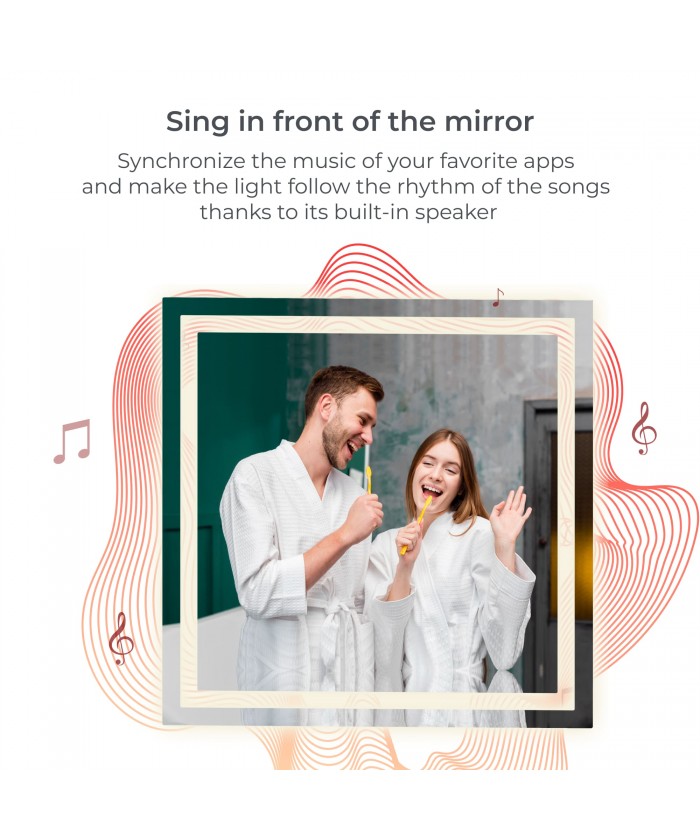 Le miroir KSIX Aqua, avec son haut-parleur intégré de 3 W, vous offre un son surround pendant que vous prenez une douche ou que vous vous toilettez dans la salle de bain. Connectez-le à votre mobile et écoutez vos chansons préférées à partir d'applications telles que Spotify, Apple Music, YouTube et bien plus encore. De plus, grâce à l'application Tuya Smart, vous pouvez synchroniser l'éclairage du miroir pour bouger au rythme de la musique que vous écoutez.