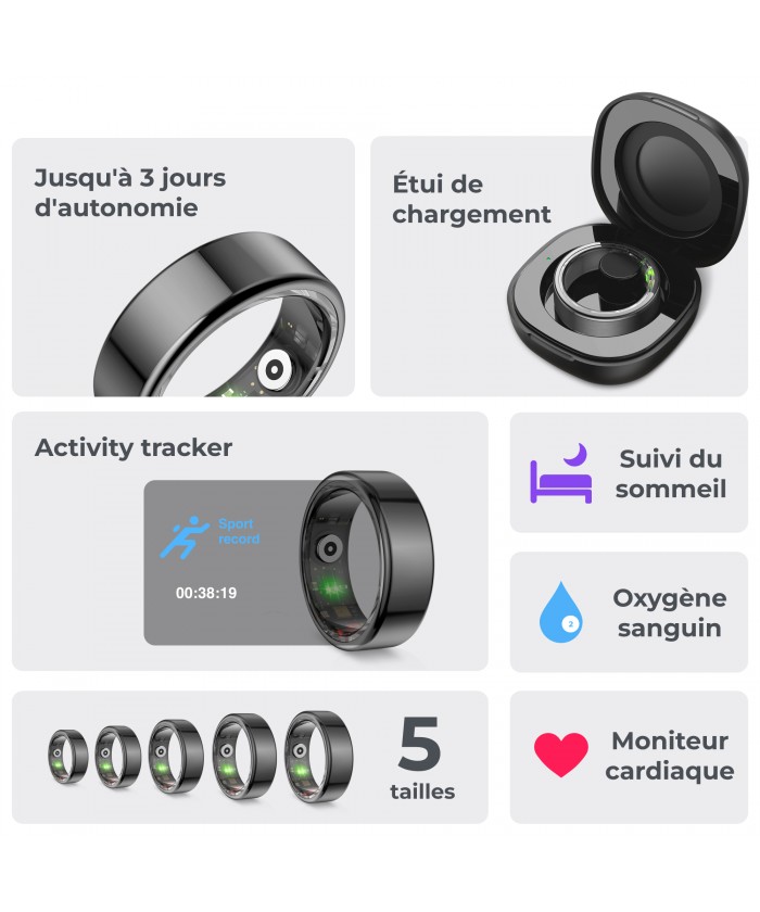 Bague : 1 heure Boîtier de charge : 2 heures