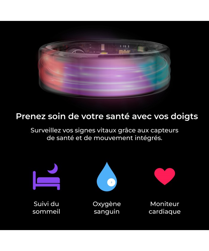 La bague connectée KSIX Saturn est le moyen le plus confortable de surveiller votre activité et de prendre soin de votre santé. Grâce à son application QRing et à sa technologie de capteur intégrée, vous pouvez surveiller votre sommeil, mesurer votre rythme cardiaque, prendre des photos et bien plus encore. Cette bague intelligente incroyablement légère est si confortable que vous oublierez que vous la portez. Quelque chose d'aussi petit peut-il être aussi puissant ? Oui, c'est possible.