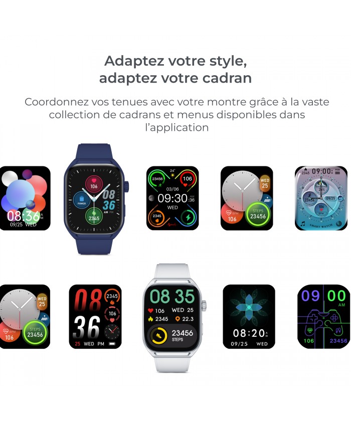 Profitez de l'écran AMOLED 2,06 pouces aux couleurs vives, conçu pour offrir une qualité d'image exceptionnelle. Avec une résolution de 401 x 502 pixels, vous profiterez de couleurs vives et d'un contraste supérieur, même en plein soleil. Personnalisez votre style avec plus de 100 cadrans de montre ou créez votre propre design, pour rendre chaque jour unique.