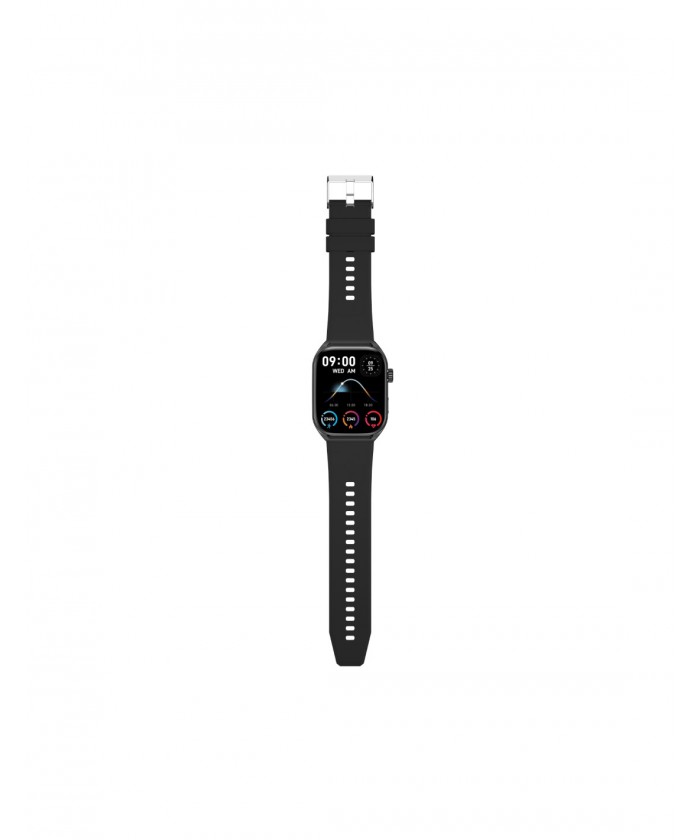 Bracelet de montre connectée : 26,8 cm de long (boîtier inclus) x 22 mm de large. Matériau : bracelet en silicone et boucle en acier inoxydable.