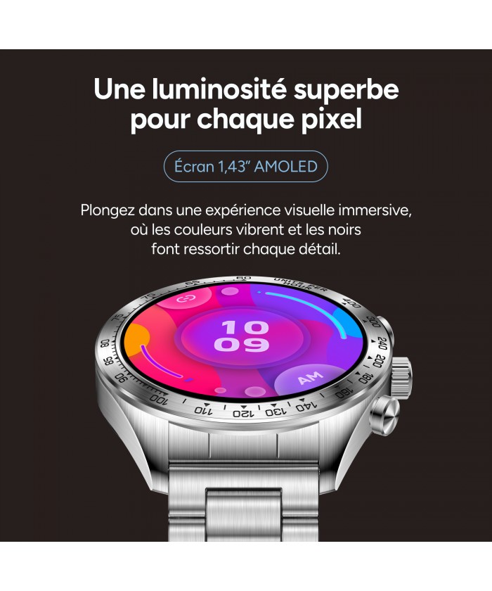 Écran AMOLED 1,43" avec une résolution de 466 x 466 px : couleurs riches et noirs véritables.